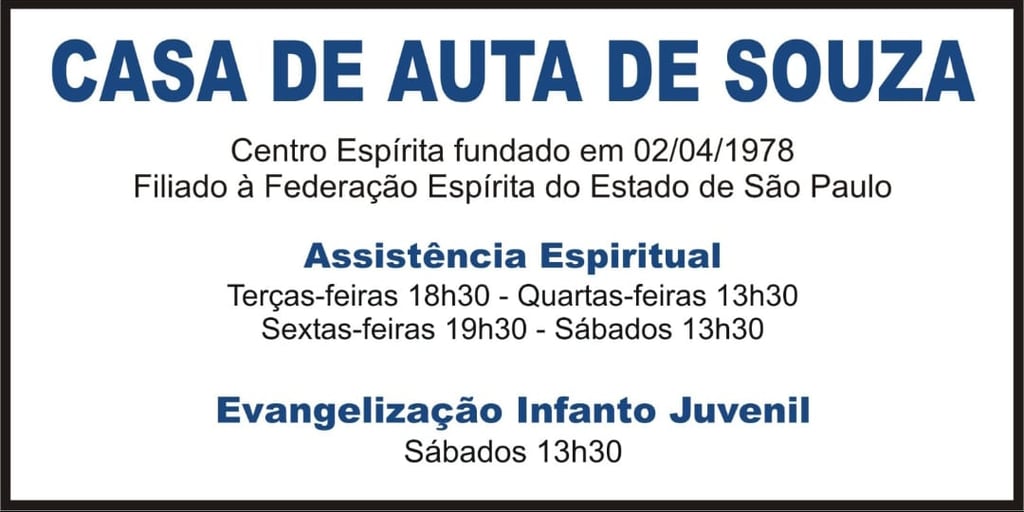Sexta-feira: abertura da Casa: 19h (Palestra e Passe Coletivo: 20h)